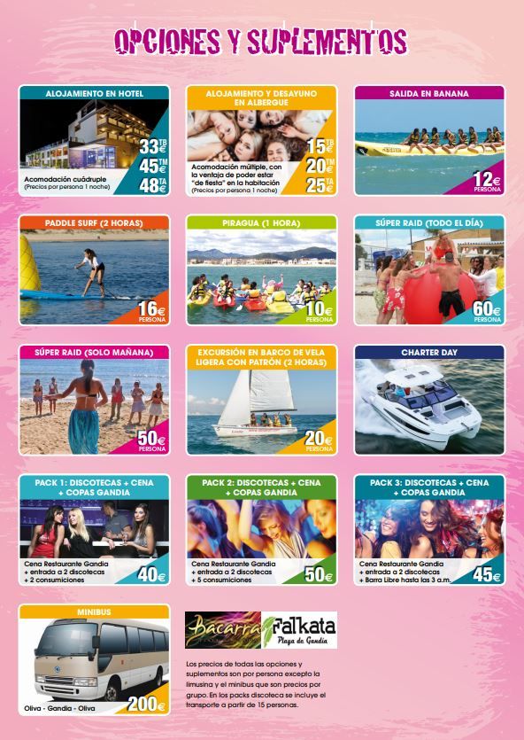 - Cena en Restaurante Gandia + entradas a las 2 discotecas + barra libre (hasta las 3 de la mañana) x 45€/persona aprox.